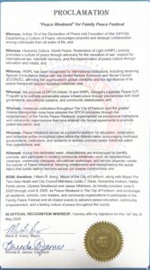 The City of South Fulton proclaimed June 6–8, 2025, as Peace Weekend, honoring the Arrow Youth Leadership Council, HWPL, and recognizing the Declaration of Peace and Cessation of War (DPCW) as a vital international peace document.